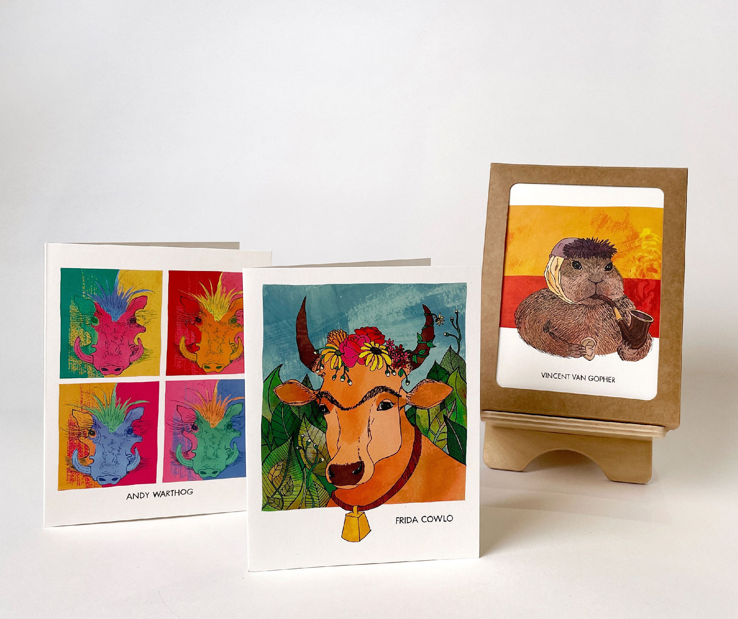 The cards in the Famous Animals series are ideal for the art, pop culture, and museum lovers. They are infused with famous people puns so chuckles abound.
