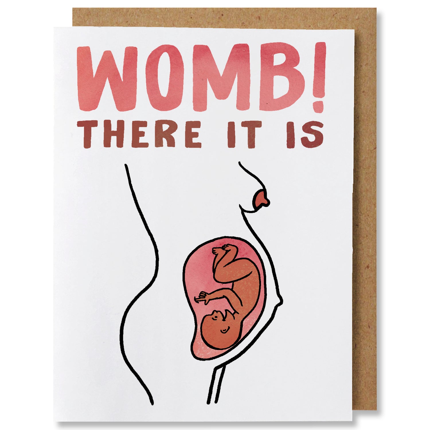 Womb! There it is - Illustrated Funny Pun Baby Congrats Card